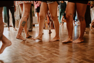 - Un temps d’invitation à suivre son mouvement sur une vague musicale guidée qui propose différents rythmes à explorer (plus dynamique, plus doux…) pour aider le corps à bouger, pour laisser ses élans (ou non élans) s’exprimer, pour dynamiser ou ralentir et surtout s’autoriser ce qui est là sans jugement, ni regard, ni commentaires.